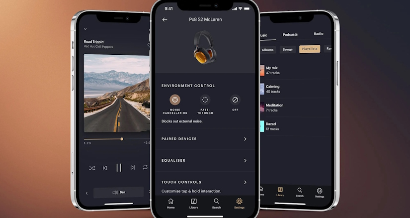 Як і всі поточні моделі навушників B&W, Px8 S2 McLaren Edition керується через додаток Music App бренду. Користувачі можуть активувати або відключати режим прозорості, налаштовувати чутливість сенсора носіння та визначати функціонал фізичної кнопки "Quick Action". Слухачі також можуть точно налаштувати звук за допомогою регульованого п'ятисмугового еквалайзера та зберігати бажані налаштування у легкодоступні пресети.