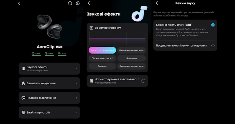 Як завжди у Soundcore все керування відбувається через додаток. Тут доступні налаштування еквалайзер, режиму підключення, мультипоінт (з LDAC не працює), оновлення прошивки тощо.