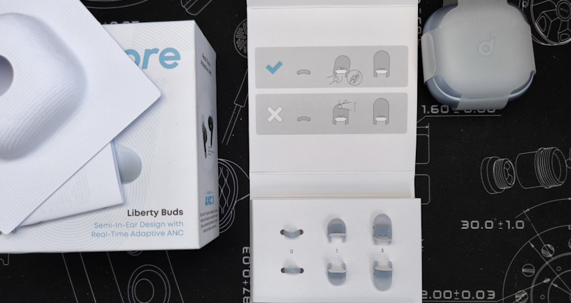 Я б міг вільно пропустити цей розділ, бо зазвичай у вкладишах нема про що тут розповідати, але не у випадку Liberty Buds. Так, пакування тут абсолютно класичне для навушників Soundcore – картонна коробка, ложемент під кейс, під ним коробка з аксесуарами. І ось на ній хотілося б зупинитися детальніше.