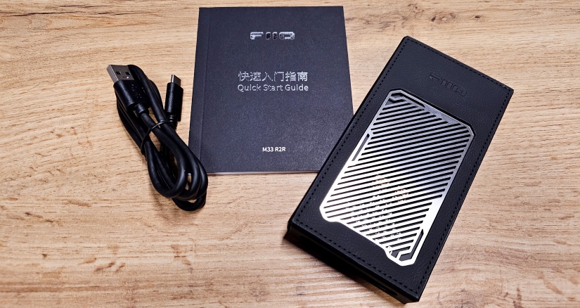 Комплектація наступна: плеєр, шкіряний чохол з металевою перфорацією позаду (одразу одягнений на плеєр), кабель USB A – USB type C та інструкція. Той варіант, коли відсутність певного аксесуару, а саме «голки» для лотка заміни microSD-карт, є перевагою комплекту. Отже, комплектація відносно стандартна, однак красивий комплектний чохол додає преміальності.