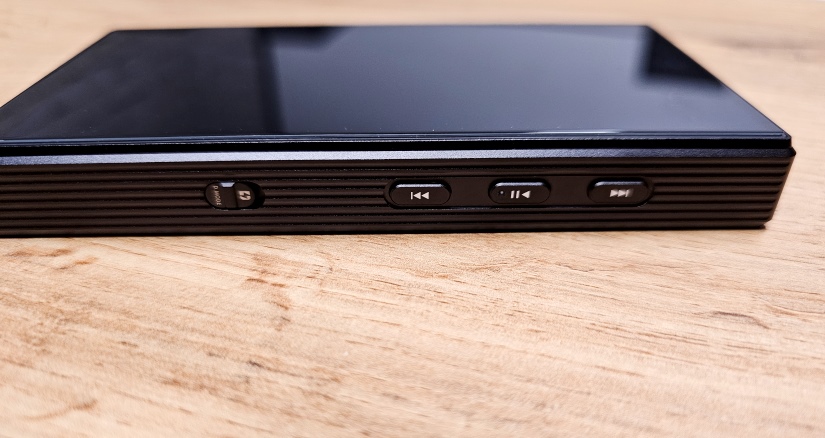 На верхньому торці розміщені: кнопка живлення та два виходи на навушники – небалансний на 3,5 мм та балансний на 4,4 мм. На нижньому торці: відкритий слот для MicroSD-карт та два порти USB type C. Один порт призначений для передачі даних (USB 3.0), інший (Power In) – для живлення (це важливо для стаціонарного використання в режимі «Desktop Mode»).