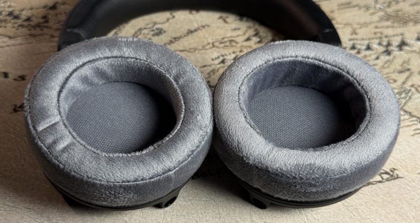 Амбушури виглядають доволі привабливо, але одразу констатую, що це не той самий «велюр», яким славляться навушники Beyerdynamic. Матеріал альтернативний, та все ж він лишається м’яким і зручним. Підозрюю, що для нього не буде проблемою випробування в пральній машині, але все на вашому сумлінні. Якщо щось не так, то я не буду крайнім! Розмір амбушур мені саме впритул по розміру вушної раковини і вуха торкаються драйверів. З часом це стає все більш помітним. І саме тут варто сказати про те, що стискання оголів’я не є прогресивним і я зазвичай менше відчуваю силу стискання, але тут воно доволі помітне через компактну форму оголів’я і меншу площу контакту амбушур з головою. Така посадка потребує відпочинку час від часу, але тут хто як звик. Тим більше слід враховувати, що така посадка зазвичай є плюсом в пасивній ізоляції. Зазвичай, але не тут – шумозаглушення вище середнього, але через велюрові амбушури буде проскакувати трохи більше ніж через шкіряні на інших моделях.