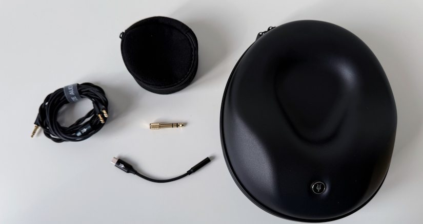 Що ж, тепер лірично переходимо до розпакування. Комплектація у новинки щедра, тут жодних претензій. Маємо кейс з твердим каркасом, легкий і досить плоский, носити його в сумці можна без проблем. Також є небалансний кабель OFC 3.5 мм, адаптер на 6.3 мм, м'який круглий чохол на змійці.