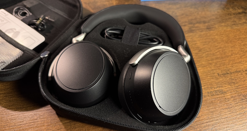 Самі навушники лежать в щільно сформованому місці, куди ви їх обов’язково маєте вкладати лівим навушником в ліве посадочне місце. Це важливо, бо артикуляція чаш має повний оберт на 180 градусів і ви будете промахуватись перші рази, повірте. Потім просто звикаєте.