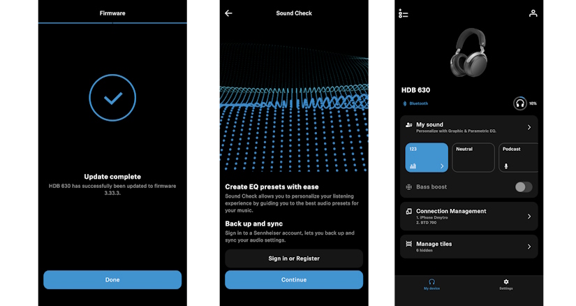 Цей додаток є певним хабом для ваших Sennheiser пристроїв і допомагає їх підключати, оновлювати, об’єднувати. Найперше, звісно ж це оновлення. Я всім рекомендую робити оновлення одразу коли вони доступні і ось саме тут був той випадок коли мене одразу ж чекало одне на черзі.