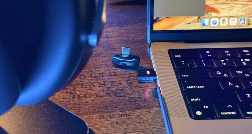 Трохи часу я тестував роботу донглу з навушниками на PS5. У мене все вийшло, звук чудовий, миттєва сумісність, але варто не забувати, що при кожному підключенні слід натисканням на кнопку донгла входити в режим найменшої затримки, де є пріоритетом не якість, а саме швидкість передачі звуку. Виробник заявляє про роботу з «наднизькою затримкою всього в 30 мс», але така затримка є об’єктивно не унікальною на ринку і так можуть навіть недорогі китайські бренди. Інша справа, що зазвичай звук в іграх не має дуже високого бітрейту і пріоритет на швидкість не погіршить звукову картину, а от те що ви граєте не в «ноунейм» гарнітурі, а з класним і збалансованим звуком – це вже варто уваги.