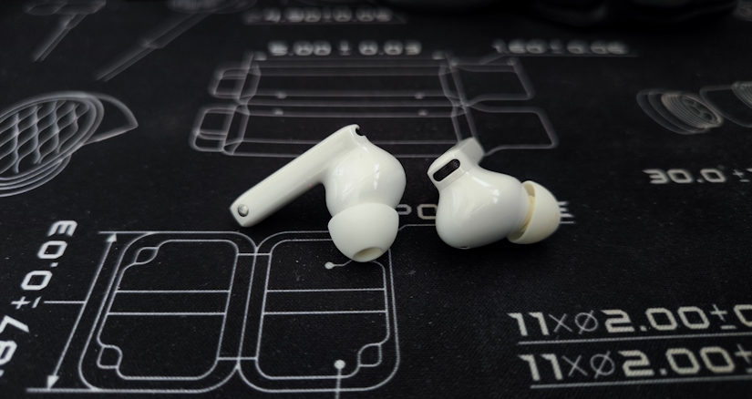 Тут Oppo явно нарешті відійшли від своїх звичних форм, і зробили, скажемо так, класичні шели. Вони ну дуже схожі за формою на Soundcore R50i та багато інших моделей від інших виробників. Головна особливість цих шелів – вони гарно тримаються у будь-яких вухах, бо модель X3i багато хто нарікав саме за не зовсім універсальну посадку, багато у кого вони просто не фіксувались нормально. Тут явно позитивні зміни. Акустично навушники хоч і заявлені як закриті, але на зовнішній стороні ніжок гарно видно великі компенсаційні отвори, тому я б назвав їх напівзакритими. Загалом якість пластику і збірки повністю відповідає флагманському позиціюванню.