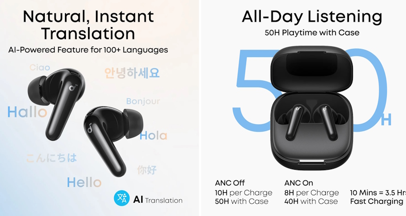 Головною технологічною перевагою ANKER Soundcore R60i NC є підтримка функції перекладу на базі штучного інтелекту. Система здатна працювати з понад 100 мовами, що дозволяє долати мовні бар'єри під час нетворкінгу, навчання чи подорожей. Крім того, навушники оснащені ефективною системою активного шумозаглушення (ANC), яка адаптується до навколишнього середовища, забезпечуючи високу якість звуку та чіткість мовлення під час дзвінків.