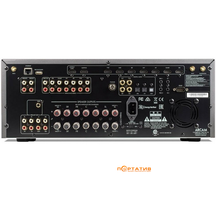 Ця модель оснащена декодерами об'ємного звуку у форматах Dolby Atmos та DTS:X, а також інших стандартів багатоканального звуку. Завдяки наявності додаткових виходів із процесора на базі Arcam AVR5 можна створювати системи у конфігурації до 7.1.4-канальних. Ресивер оснащений сімома HDMI-входами та двома виходами, з можливістю передачі сигналів 4K Ultra HD (HDCP 2.2) та підтримкою сучасних відеотехнологій.